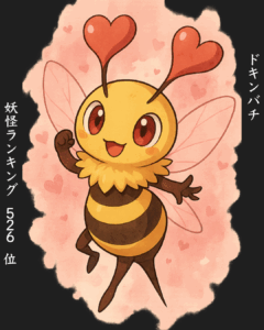 • 特徴: ココロのパートナー。ハート型の触角を持つ恋愛系昆虫妖怪。